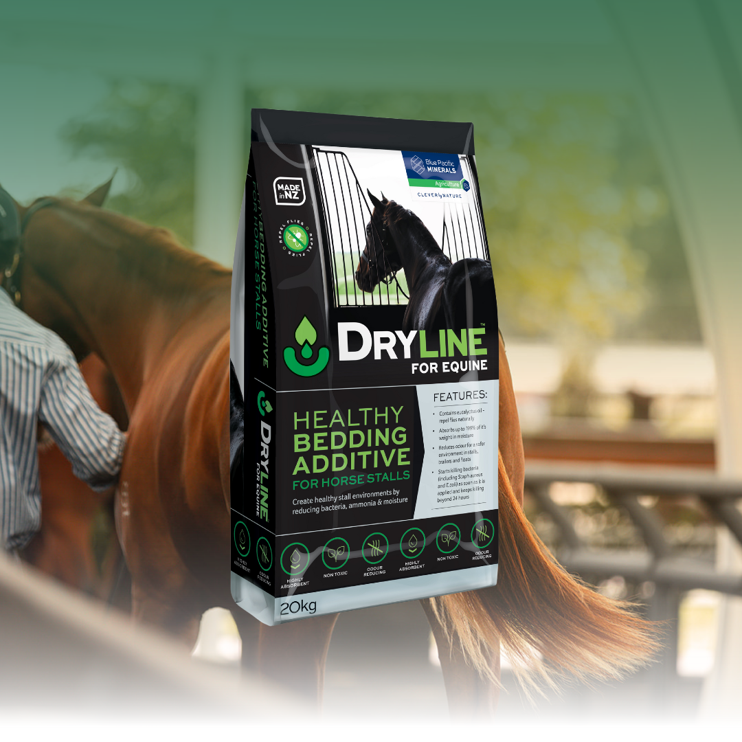We are excited to be launching a revolutionary new equine bedding product from the same manufacturer as Fixine for Equine. Dryline™ for Equine is a bedding additive that reduces bacteria, ammonia and moisture in bedding in horse stalls and floats, prolonging a stable’s life cycle. Like Fixine for Equine, this has been taking New Zealand by storm since its launch.